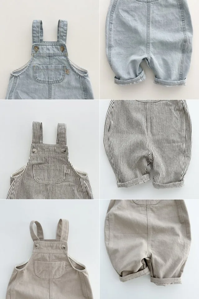 Children's denim overalls 0-6 year old boys and girls solid color denim overalls fashionable Korean version denim casual pants